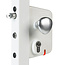 Elektrisch slot met aluminium behuizing en roestvrijstalen binnenwerk. Dit slot blokkeert de krukken onder spanning en laat je tevens zien wanneer de blokkering actief is op de rode led-window. Dankzij de 20 mm continue regelbaarheid van beide pennen, kan u elke poort haarfijn afregelen om een optimale vergrendeling te garanderen. Een massieve roestvrijstalen dieptevergendeling van 23 mm garandeert een veilige sluiting.